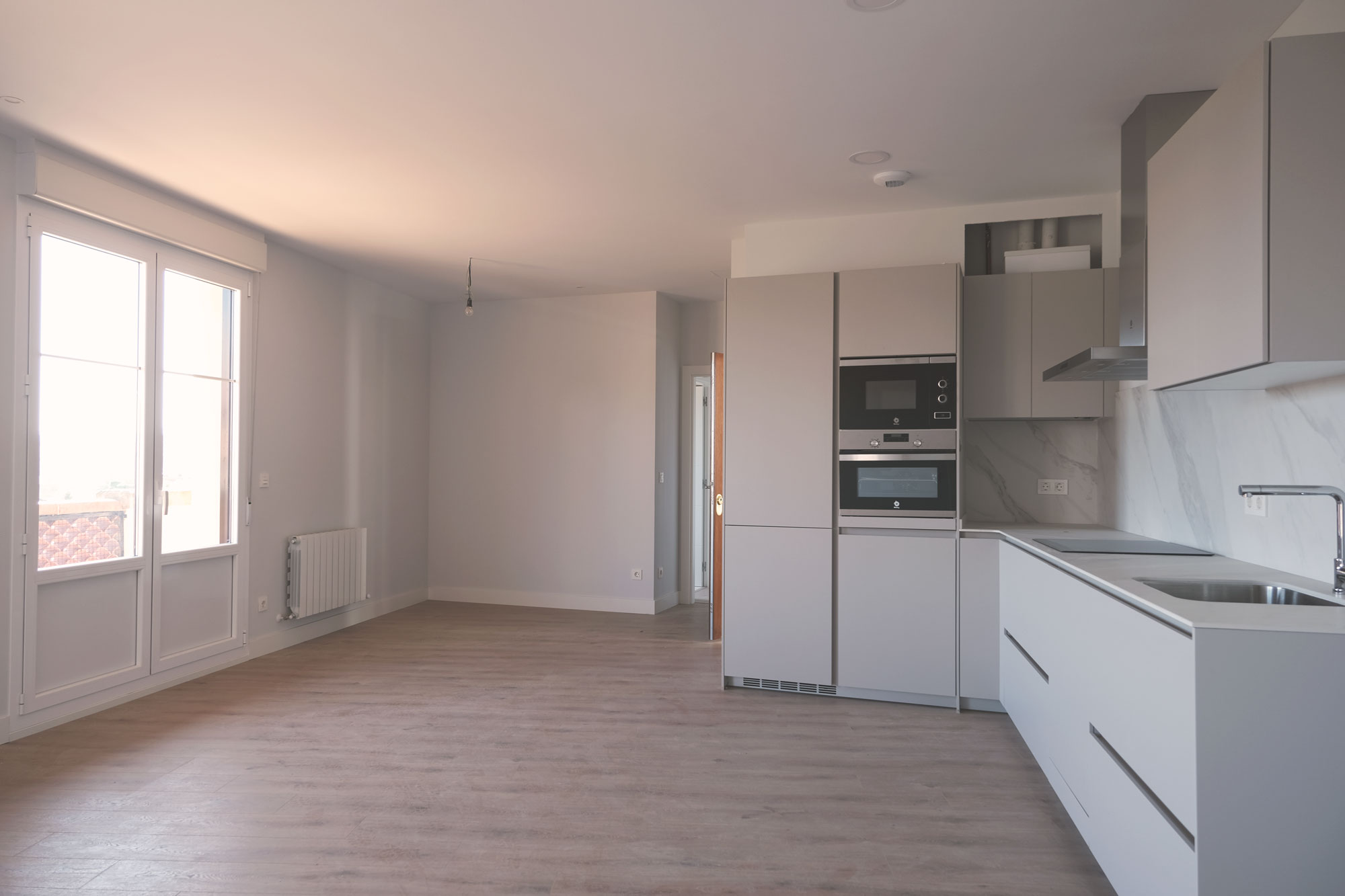 Apartamento de 103,01m2 totalmente reformado con dos habitaciones, dos baños y gran terraza. Orientación sur. Piso luminoso y con vistas. Amplio salón comedor con cocina incorporada (equipada con electrodomésticos).